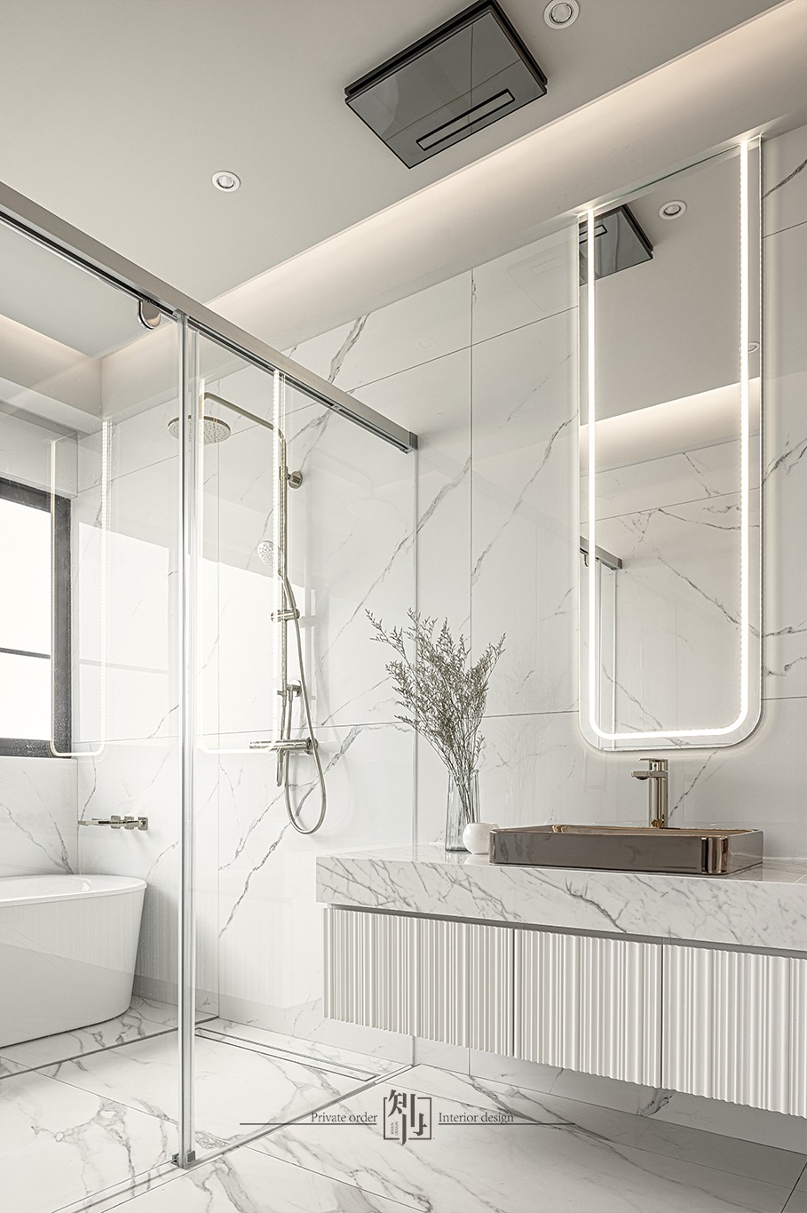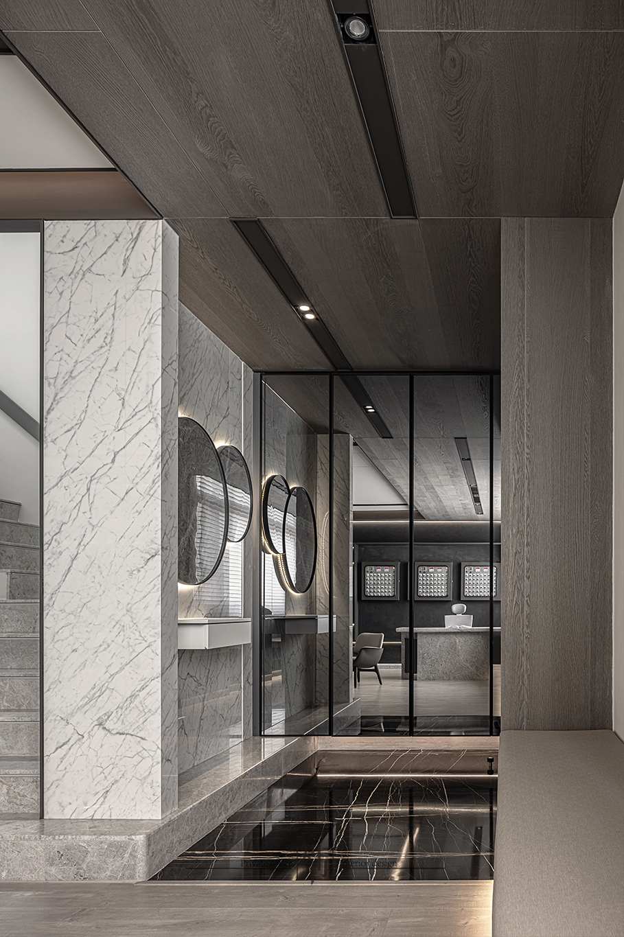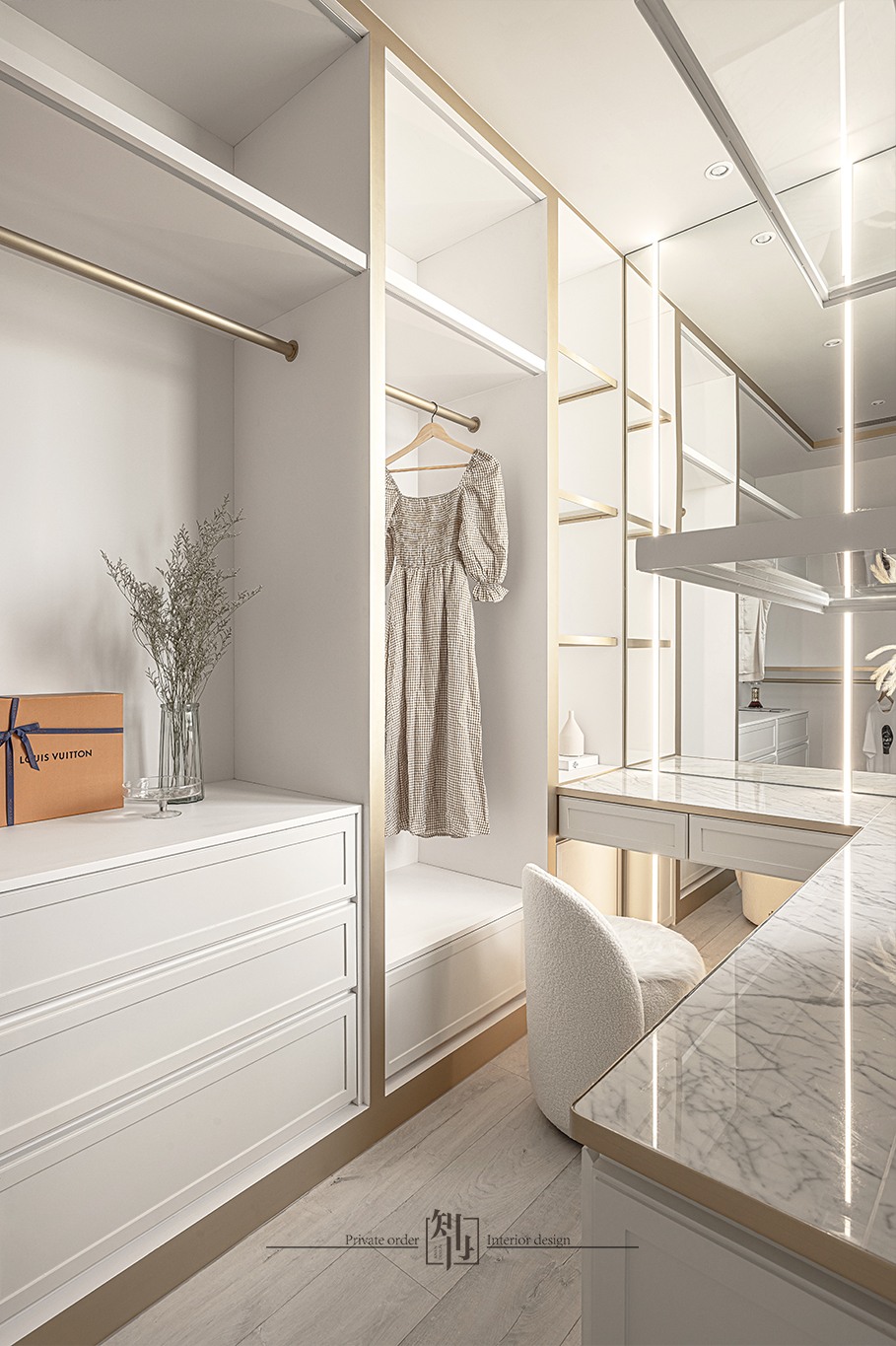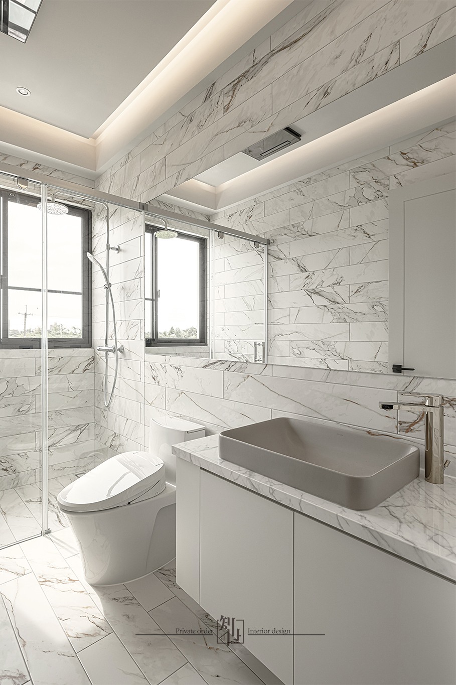 This project is a compound house built on his own land. The owner is engaged in the agricultural industry, so in planning the residential space, in addition to the residential space planning, we have to plan the intelligent agricultural equipment space, find the balance of beauty in work and life, and combine modern aesthetics to make the room more bright; the architectural appearance of the residence is simple, and the owner will enjoy another beautiful view when he walks into the home. An extravagant and elegant marble spreads along the facade to the living room and dining kitchen. The owner is very particular about Fengshui, so we made several adjustments in the space planning, placing the TV wall in it. The staircase includes a platform to assist in going up and down the stairs, which can also be used to place audio-visual equipment. Each field is defined by the work table, sofa and table chair. A major focus of this project is the installation of the farm’s intelligent control box, which is mainly used to control the farm’s temperature and humidity, feed and drinking water. After evaluating the operation flow and aesthetics, we abandoned the original method of decorating with folding doors and decided to beautify the appearance of the equipment directly, as if it were one of the design elements and became the background of the office area. The owner can keep an eye on the farm without having to leave the house, and in an invisible way, the space is divided into attributes. The work desk is made of marble, which echoes the TV wall design and reflects the consistency of the public domain in detail. The second floor is a purely private area, divided into a master bedroom, a guest room, and a children’s room, with a separate clothing room to fulfill the mistress’ wish. The master bedroom is designed to be a warm place to rest the body and soul, with elegant line panels and soft colors to soothe thoughts and fatigue. The guest room and children’s room use warm wood, showing a Japanese natural and tranquil atmosphere, and custom-made furniture along the contour of the space outlines a simple but delicate space, becoming a free corner. The bathroom is designed with the luxurious texture of silver fox marble, and the bath cabinet is built with elegant lines to create a soft bathing time. According to the habits of the couple, we configured an independent bathtub and set up a pair of bath tubs, so that they can indulge in their own moments, but also accompany each other in daily life without disturbing each other. The overall copywriting combines work and daily life, and makes many adjustments to make a consistent design, and the owners are satisfied with the work, which is our honor.