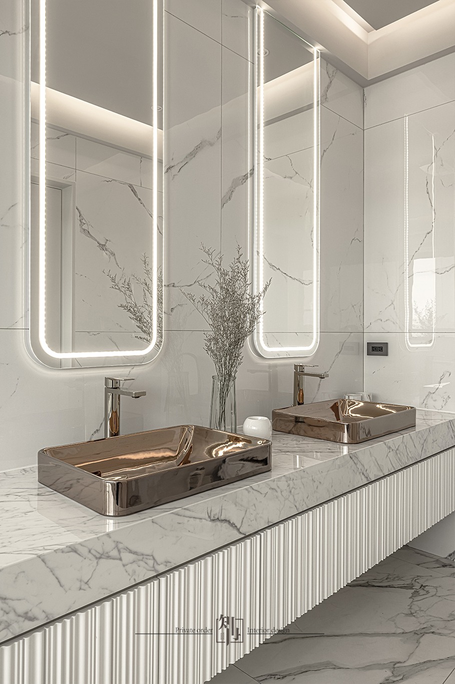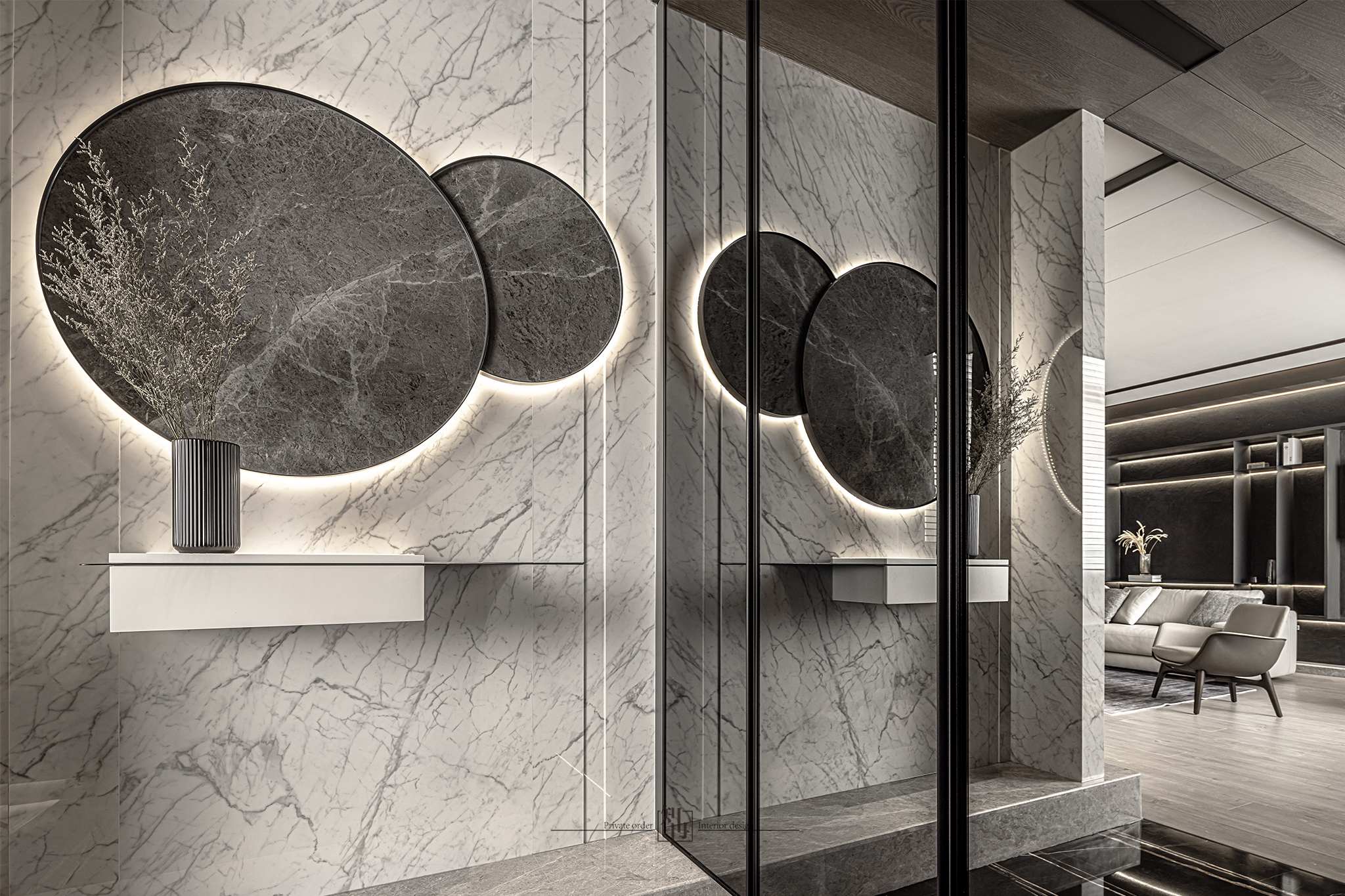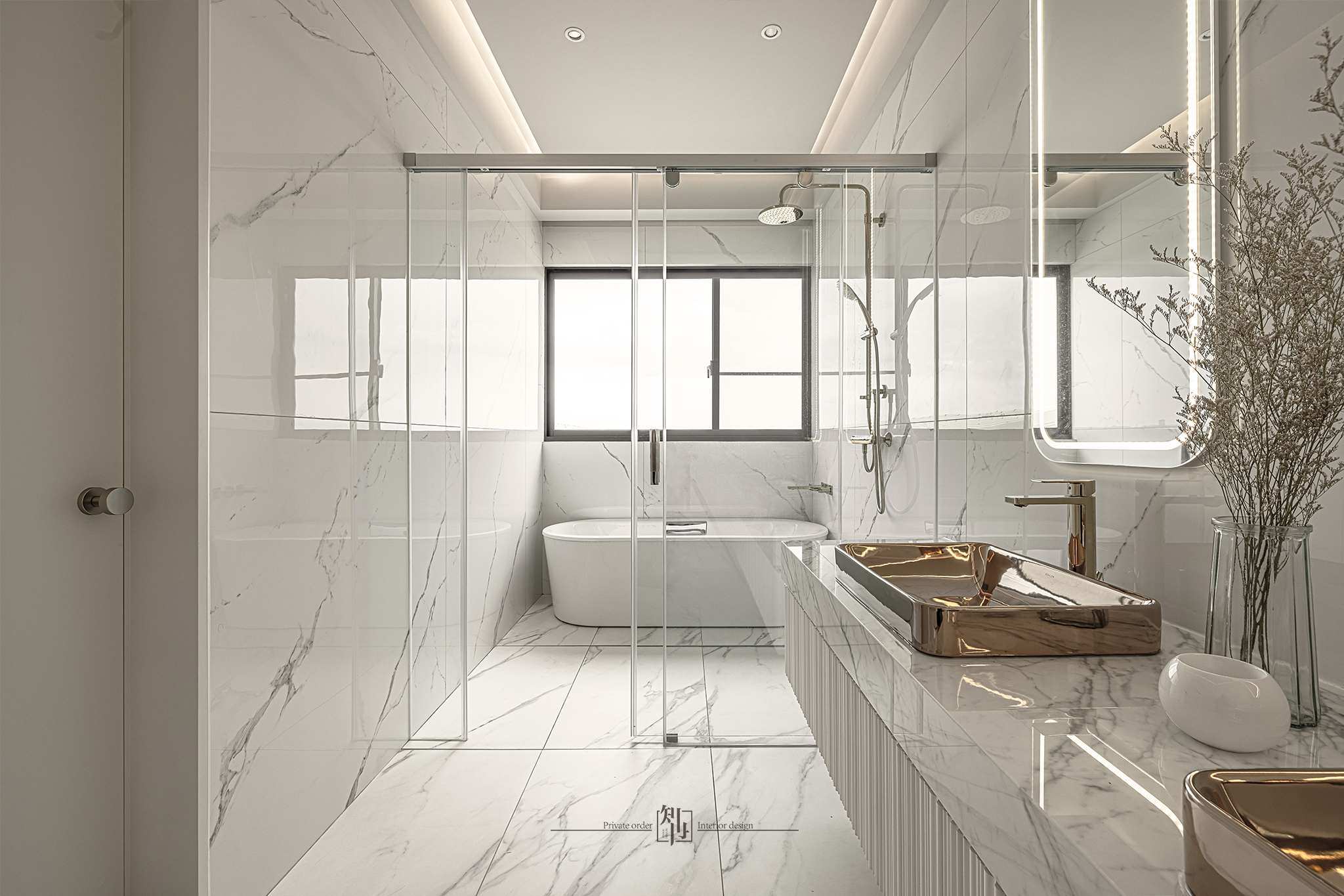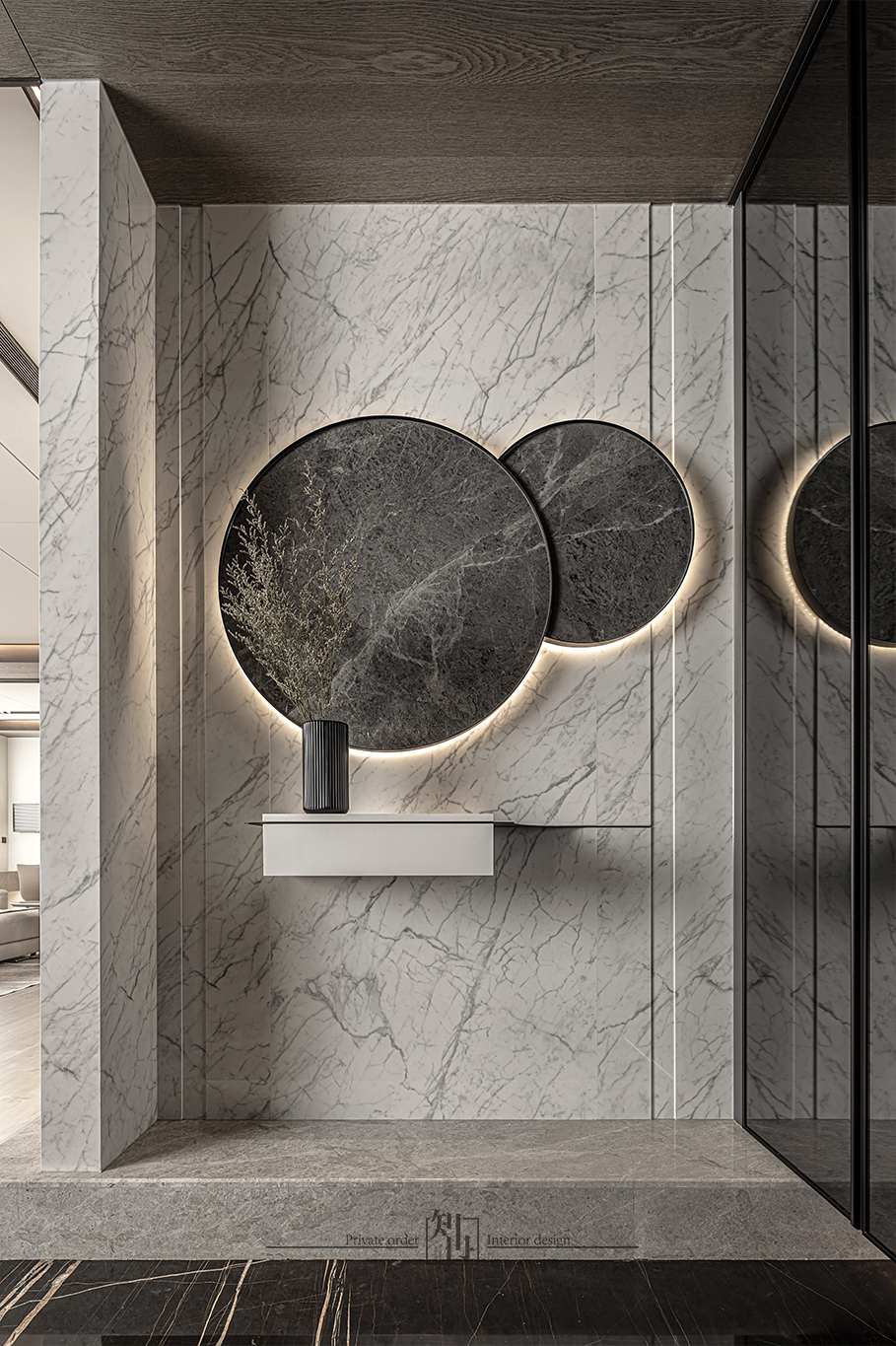 This project is a compound house built on his own land. The owner is engaged in the agricultural industry, so in planning the residential space, in addition to the residential space planning, we have to plan the intelligent agricultural equipment space, find the balance of beauty in work and life, and combine modern aesthetics to make the room more bright; the architectural appearance of the residence is simple, and the owner will enjoy another beautiful view when he walks into the home. An extravagant and elegant marble spreads along the facade to the living room and dining kitchen. The owner is very particular about Fengshui, so we made several adjustments in the space planning, placing the TV wall in it. The staircase includes a platform to assist in going up and down the stairs, which can also be used to place audio-visual equipment. Each field is defined by the work table, sofa and table chair. A major focus of this project is the installation of the farm’s intelligent control box, which is mainly used to control the farm’s temperature and humidity, feed and drinking water. After evaluating the operation flow and aesthetics, we abandoned the original method of decorating with folding doors and decided to beautify the appearance of the equipment directly, as if it were one of the design elements and became the background of the office area. The owner can keep an eye on the farm without having to leave the house, and in an invisible way, the space is divided into attributes. The work desk is made of marble, which echoes the TV wall design and reflects the consistency of the public domain in detail. The second floor is a purely private area, divided into a master bedroom, a guest room, and a children’s room, with a separate clothing room to fulfill the mistress’ wish. The master bedroom is designed to be a warm place to rest the body and soul, with elegant line panels and soft colors to soothe thoughts and fatigue. The guest room and children’s room use warm wood, showing a Japanese natural and tranquil atmosphere, and custom-made furniture along the contour of the space outlines a simple but delicate space, becoming a free corner. The bathroom is designed with the luxurious texture of silver fox marble, and the bath cabinet is built with elegant lines to create a soft bathing time. According to the habits of the couple, we configured an independent bathtub and set up a pair of bath tubs, so that they can indulge in their own moments, but also accompany each other in daily life without disturbing each other. The overall copywriting combines work and daily life, and makes many adjustments to make a consistent design, and the owners are satisfied with the work, which is our honor.