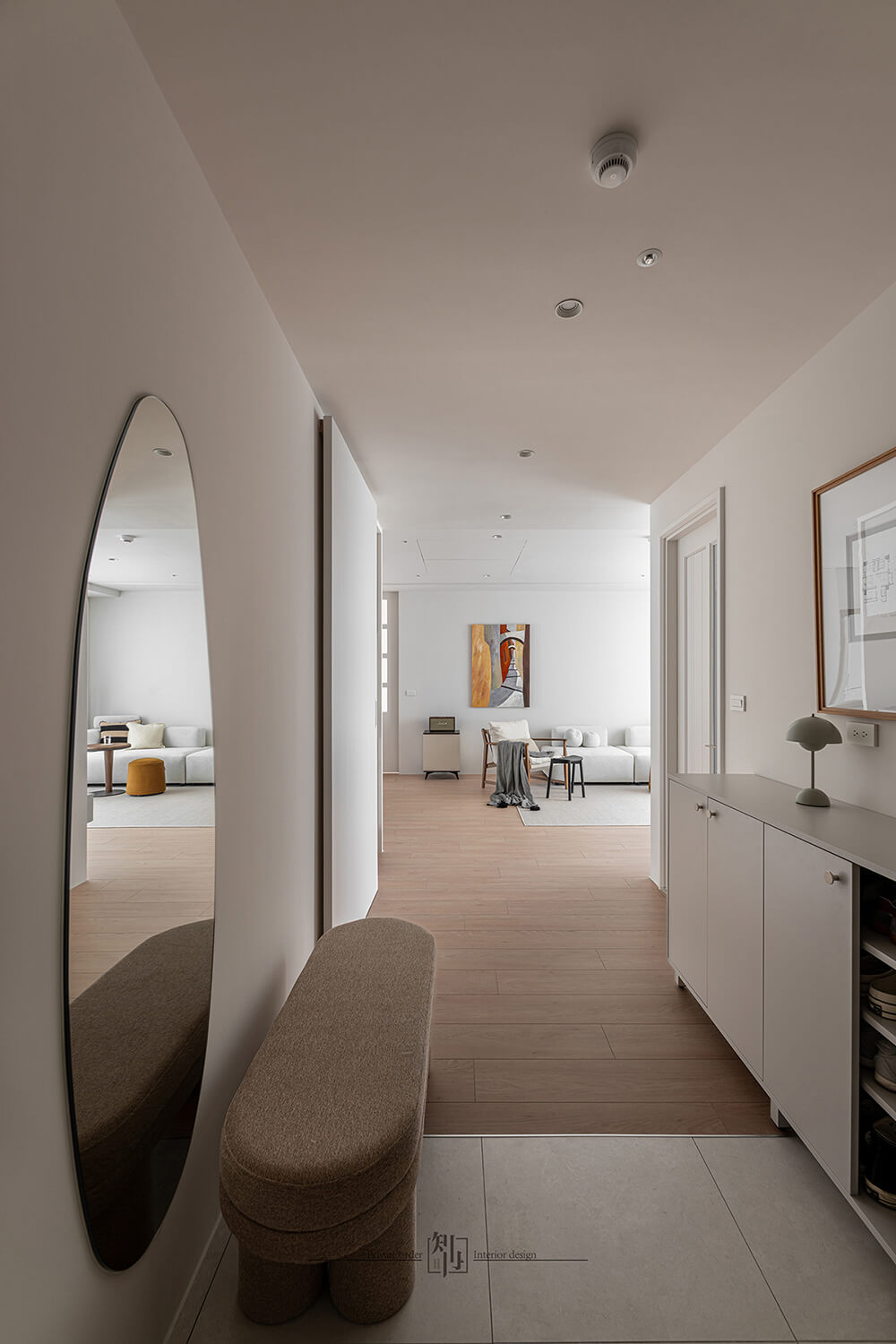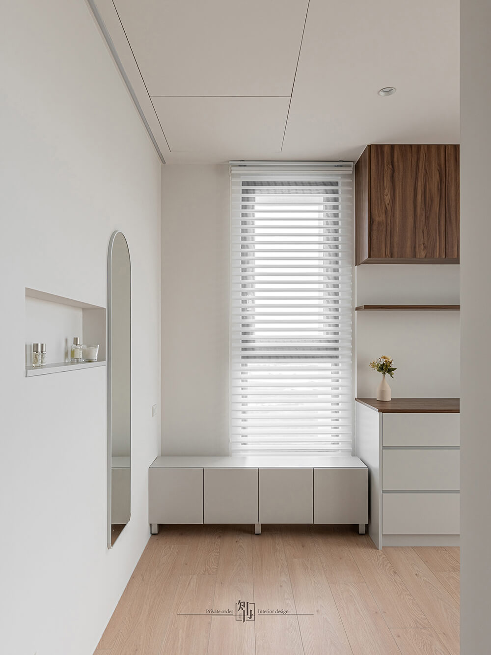 整體材質選擇克制而精準,以木質、織品與霧面材質為主,避免過多裝飾,讓觸感與光影成為主角。在自然光、溫暖木色與柔和色調的交織中,形塑出一個乾淨、平和、並且帶有溫度的現代居所,讓生活回歸於簡單卻充滿質感的日常。