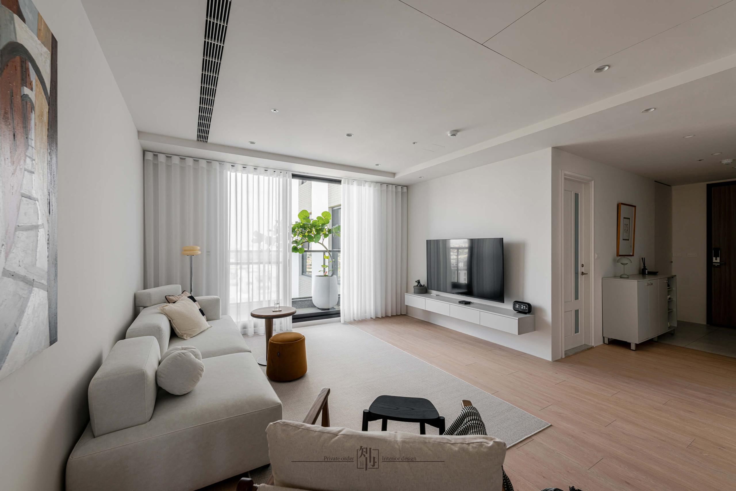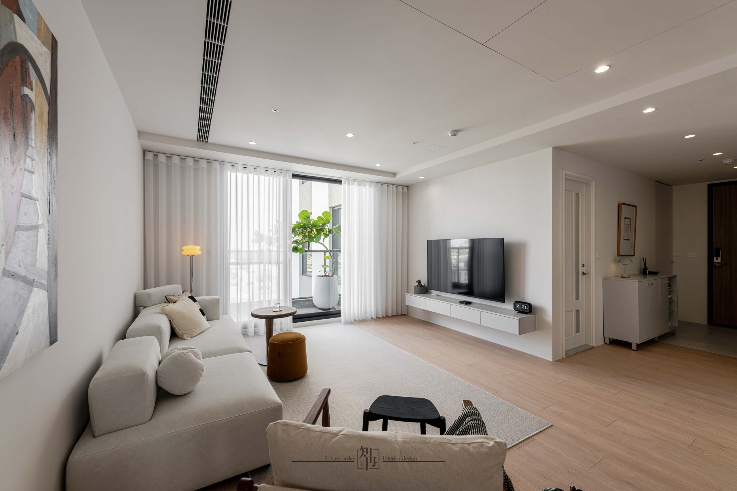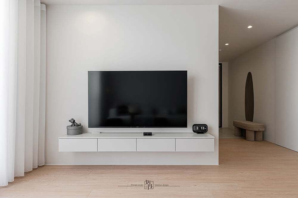 這是一處以簡約與光感為靈魂的現代居所,透過乾淨俐落的線條與大面積留白,營造出舒適而具質感的生活場景。整體設計以純白牆面為基調,搭配溫潤木地板,將視覺重心留給自然光與空間細節,讓每一次呼吸都感受到輕盈與自在。