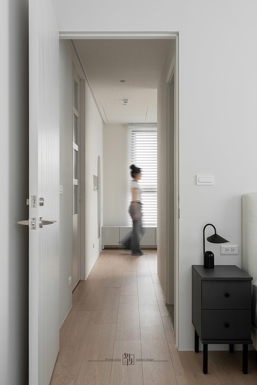This residence embraces a design ethos rooted in simplicity and light, where clean lines and generous negative space create a refined yet comfortable living environment. Crisp white walls serve as a serene backdrop, paired with warm wood flooring that anchors the space with natural texture. The visual focus rests on natural light and carefully curated details, allowing every moment to feel airy and effortless.