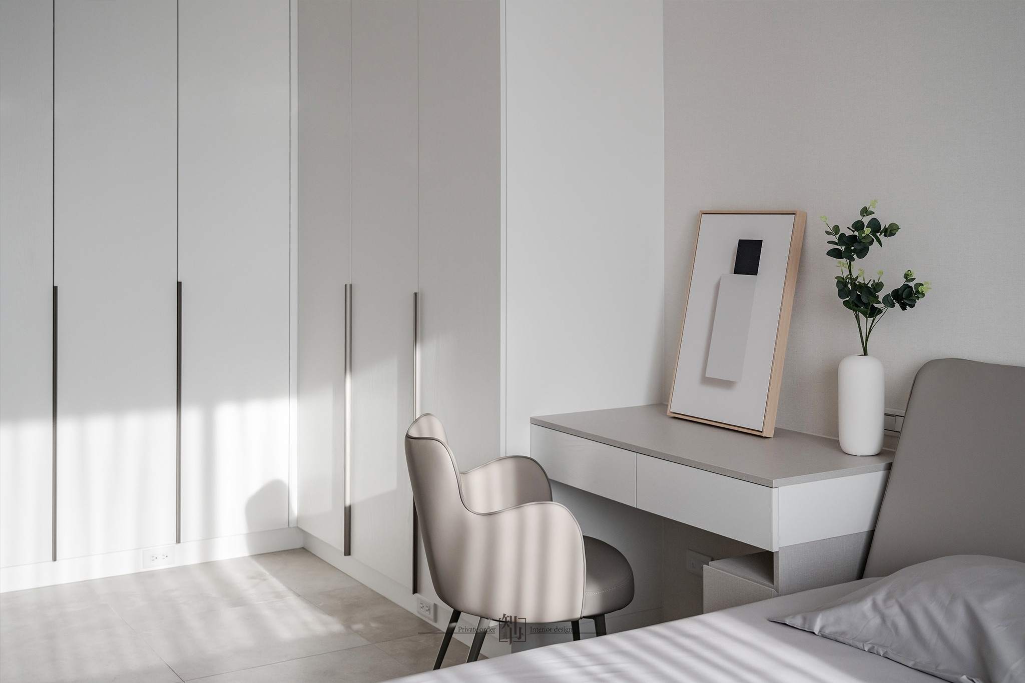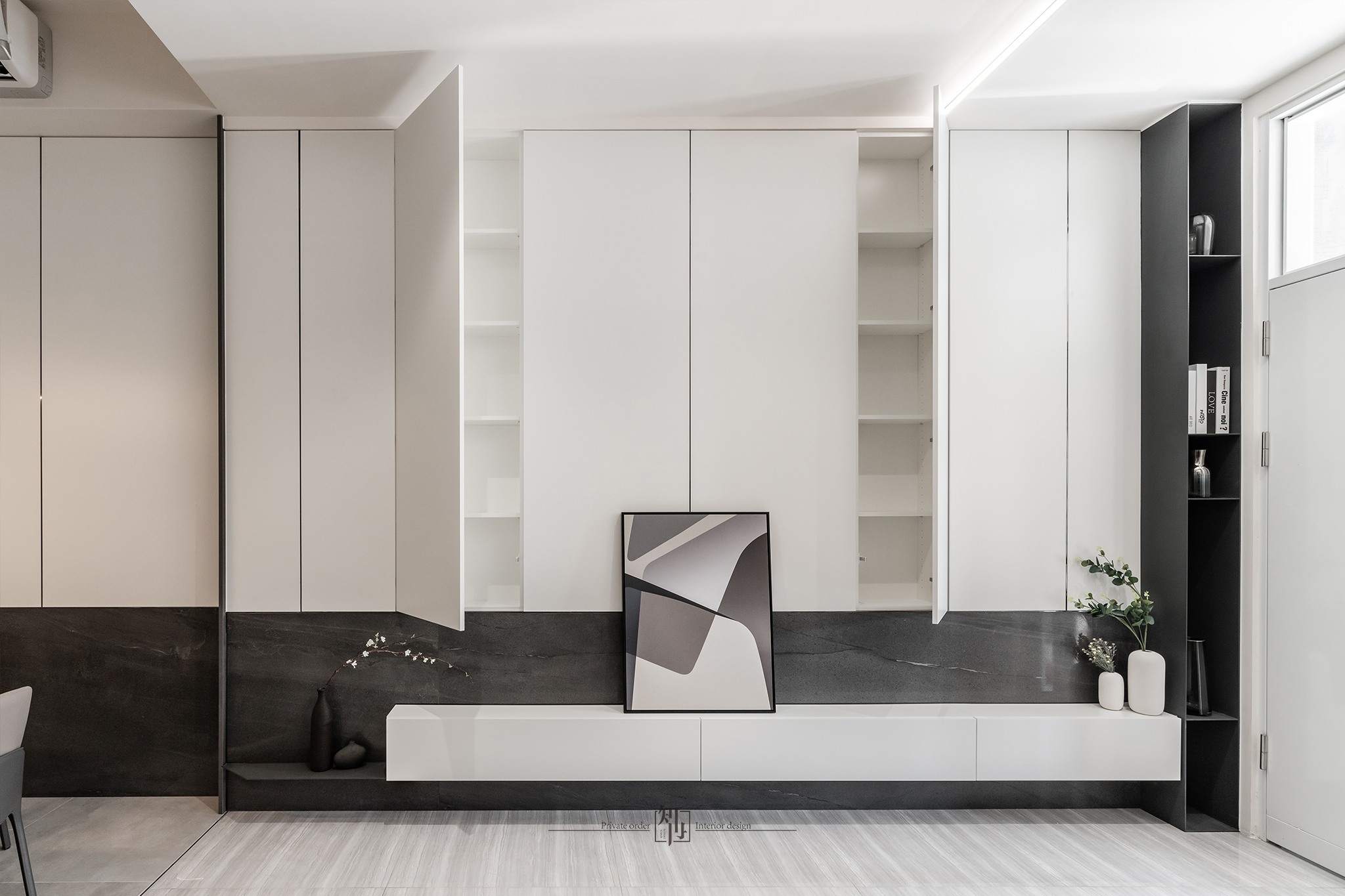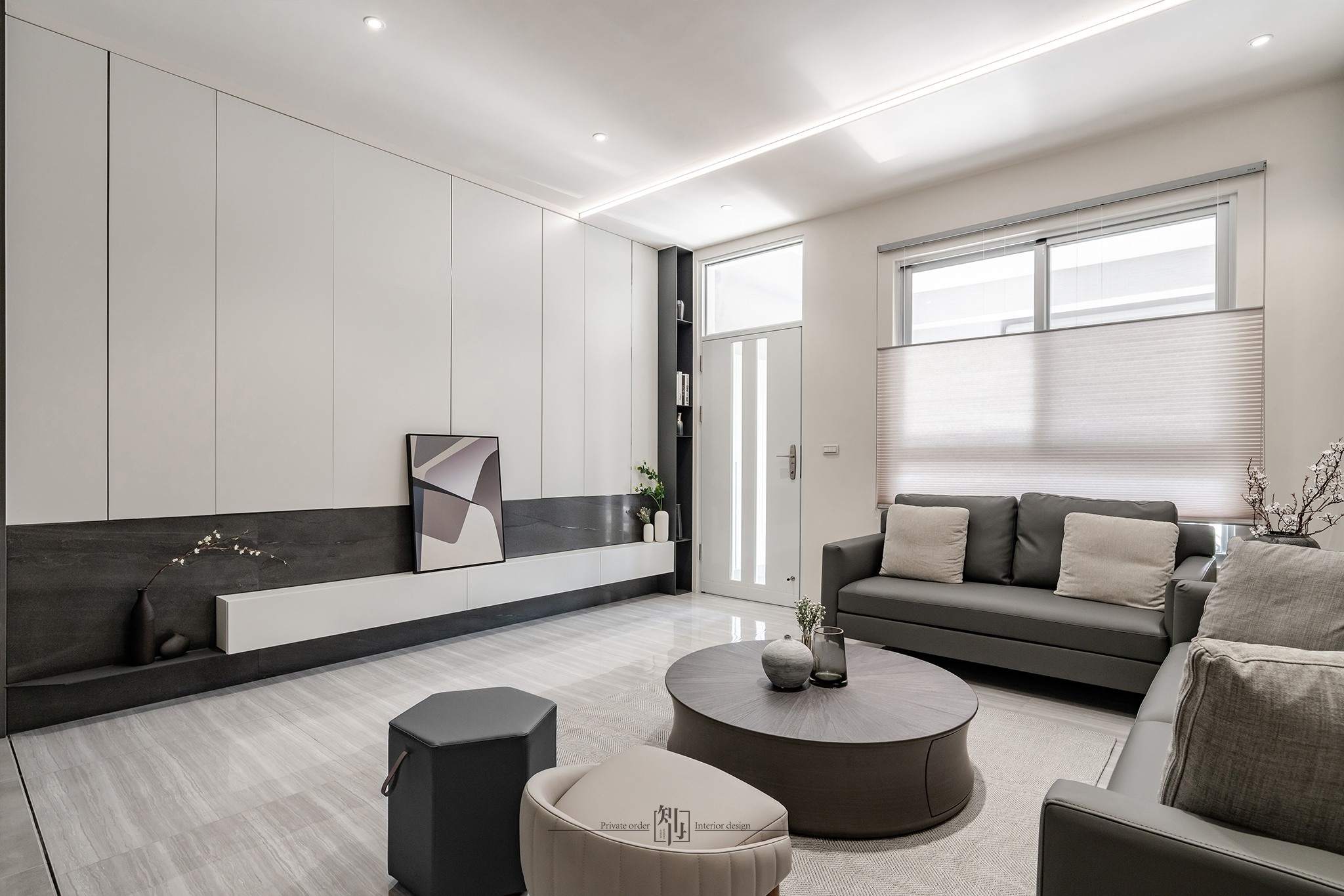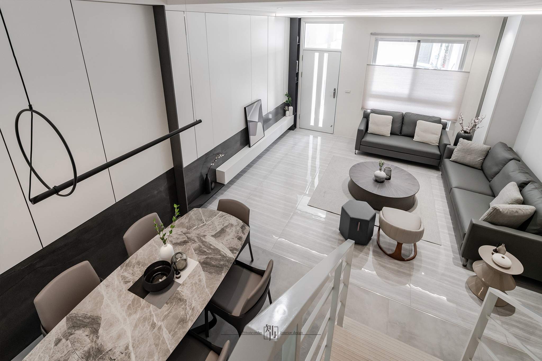 這個項目是為了一個大家庭的住宅,家裡有父母和三個姐妹,每個人的喜好都稍有不同,因此在房間的設計上,每個房間的風格都有所不同。考慮到家中有較多的居住人口,我們非常注重收納的部分。為了避免長時間居住造成視覺上的混亂,我們增加了更多的嵌入式儲物櫃。在公共空間的設計上,我們設置了可以讓全家人一起用餐的大理石長桌,整體設計風格以現代簡約為主。這是一個明亮、簡潔且同時具有美感的作品。